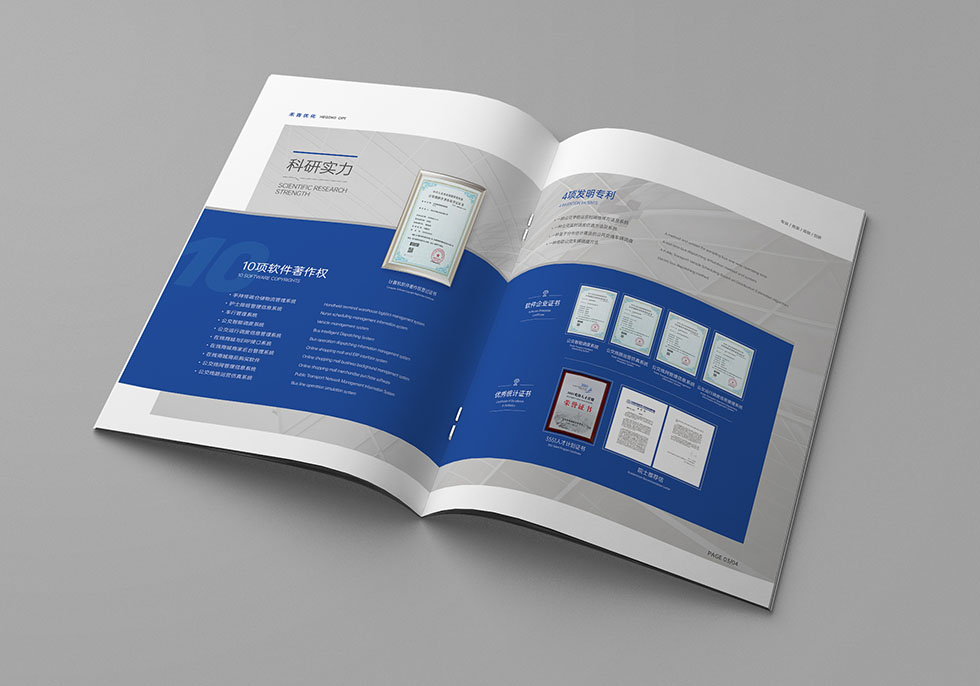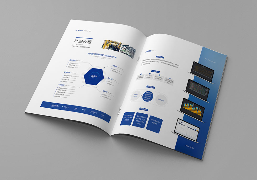 項目背景:武漢禾青優化科技有限公司創建于2019年6月,軟件著作權10項,發明專利5項,以全面建設公共交通運營服務智能化為核心,為用戶(政府、公交企業、乘客)提供智能公交一體化解決方案,幫助建成高品質、高效益的公共交通服務體系。艾的爾承接其畫冊設計制作,成立品牌設計小組,與企業進行深入溝通,明確企業對于畫冊設計的需求,畫冊采用藍色與白色,體現科技感,奠定了畫冊整體基調。封面以公交現線圖為載體,體現企業主營業務,表現手法比較創新,內頁圖片采用跨版的表現手法,大氣高級,提煉核心要點,進行精煉設計。封面采用藍色,藍色則寓意企業、汽車等標準色,它代表智慧,象征著和諧世界、永不言棄的精神。