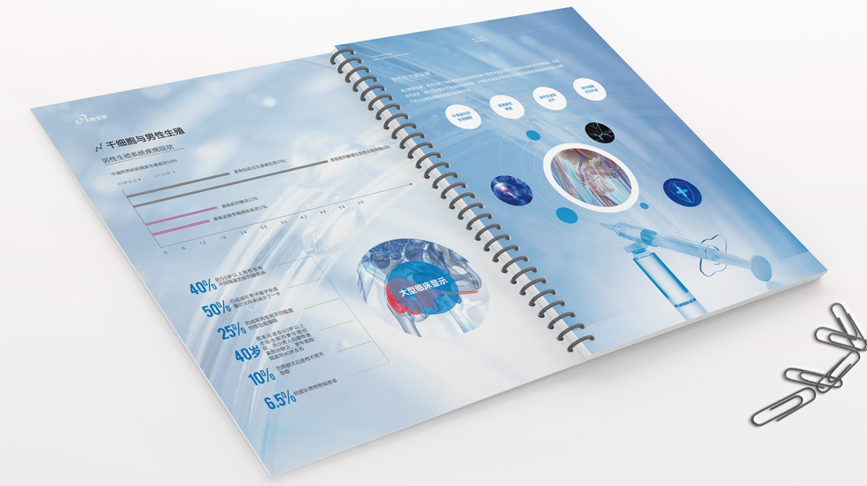 項目背景:武漢天樞生物科技是一家致力于干細胞全產業鏈創新型企業,是集研發、生產和銷售于一體的干細胞全產業鏈平臺公司,建立干細胞存儲、制備、科研及技術服務,致力于致力于將人類平均壽命提高到120歲。艾的爾團隊承接該項目,主動與天樞生物對接,了解對方的需求。設計師在宣傳畫冊設計創意過程中,重點表現企業的醫療等服務,在設計手法上將企業的行業屬性突顯出來,畫面設計主題顏色整體采用生物藍,用色上主要是藍色,藍色是海洋的顏色,也是潔凈生機的象征,在內頁的設計中,按黃金分割比例設計,標題與文字的板塊相互呼應文圖分布疏密有致,整個版面簡潔優雅。大膽留白,恰到好處的留白使畫冊設計版面注入了生機,版面中的顏色也多以白色、藍色為主都是明亮的顏色,傳達了一種向上的活力和體現生物科技的行業屬性。整個畫冊設計雅致美觀。