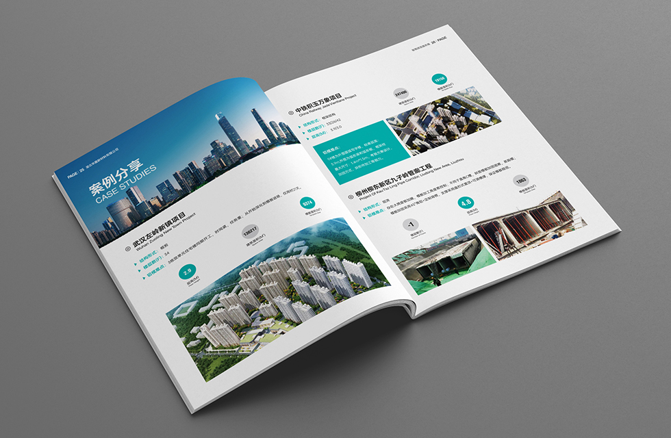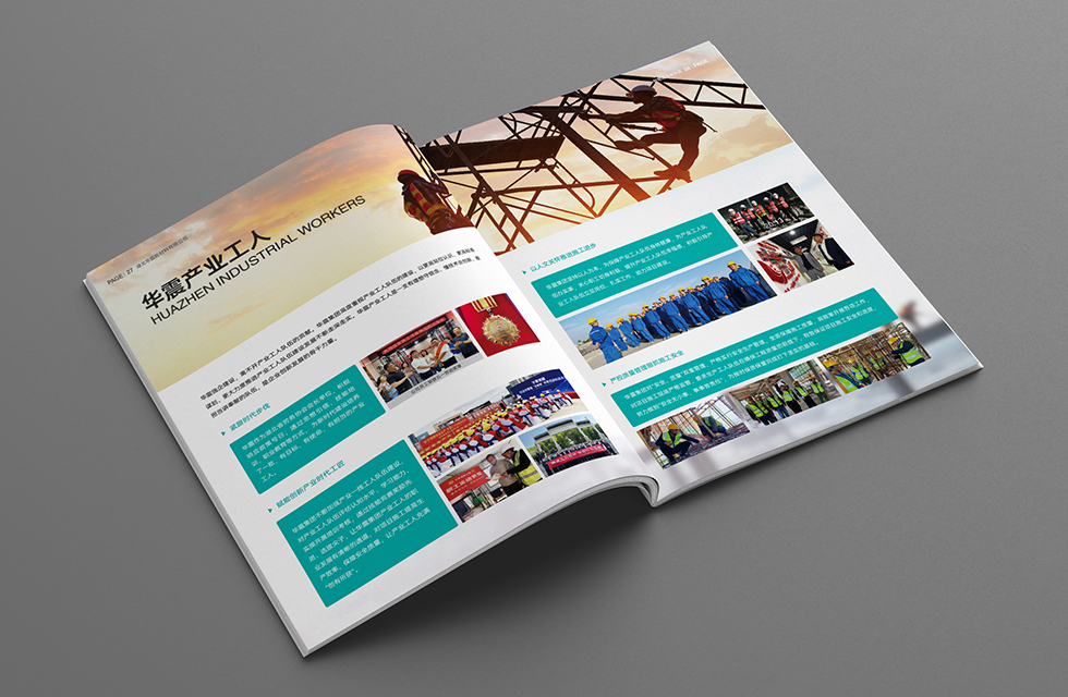 項目背景:華震集團是一家以經營建筑材料為主,集建筑總包、勞務大清包、鋼材商砼貿易、新材料研發制造、鋼材大小料加工、倉儲和物流為一體的中大型企業。集團建有黨組織、工會、公益志愿組織和完善的企業文化建設體系。艾的爾設計接受其委托,承接畫冊設計項目。在畫冊設計、創意的過程中,設計師通過對行業屬性進行深入地了解,在畫冊設計、創意的過程中,重點在表現企業主要是從事建筑總包,建筑材料供應等服務,因此在設計中以藝術的手法表現企業的行業屬性。在畫冊色封面設計中,設計師考慮到華震集團的企業定位是智能建造服務商,生產理念上突出智能化、標準化、環?;?,因此色彩選擇藍綠色系,給人環保和智慧的觀感,給人一種平和恬靜的感官效果,封面中建筑樓體直接展現華震的業務范圍,建筑類(地下室、辦公體系建筑、住宅體系建筑)建造服務,作為企業和項目畫冊,能夠開門見山傳達畫冊的類別和價值。從封面中都彰顯出企業的實力強大,沉穩細致。在內頁的設計中,按黃金分割比例設計,標題與文字的板塊相互呼應文圖分布疏密有致,整個版面簡潔優雅。大膽留白,恰到好處的留白使畫冊設計版面注入了生機,版面設計中有部分透明化的背景圖,是整個畫面不死板呆滯,整體給人大氣、智慧的印象。整個畫冊傳達出了沉穩、專業的視覺形象,對塑造企業專業、實力的形象有極大的作用。