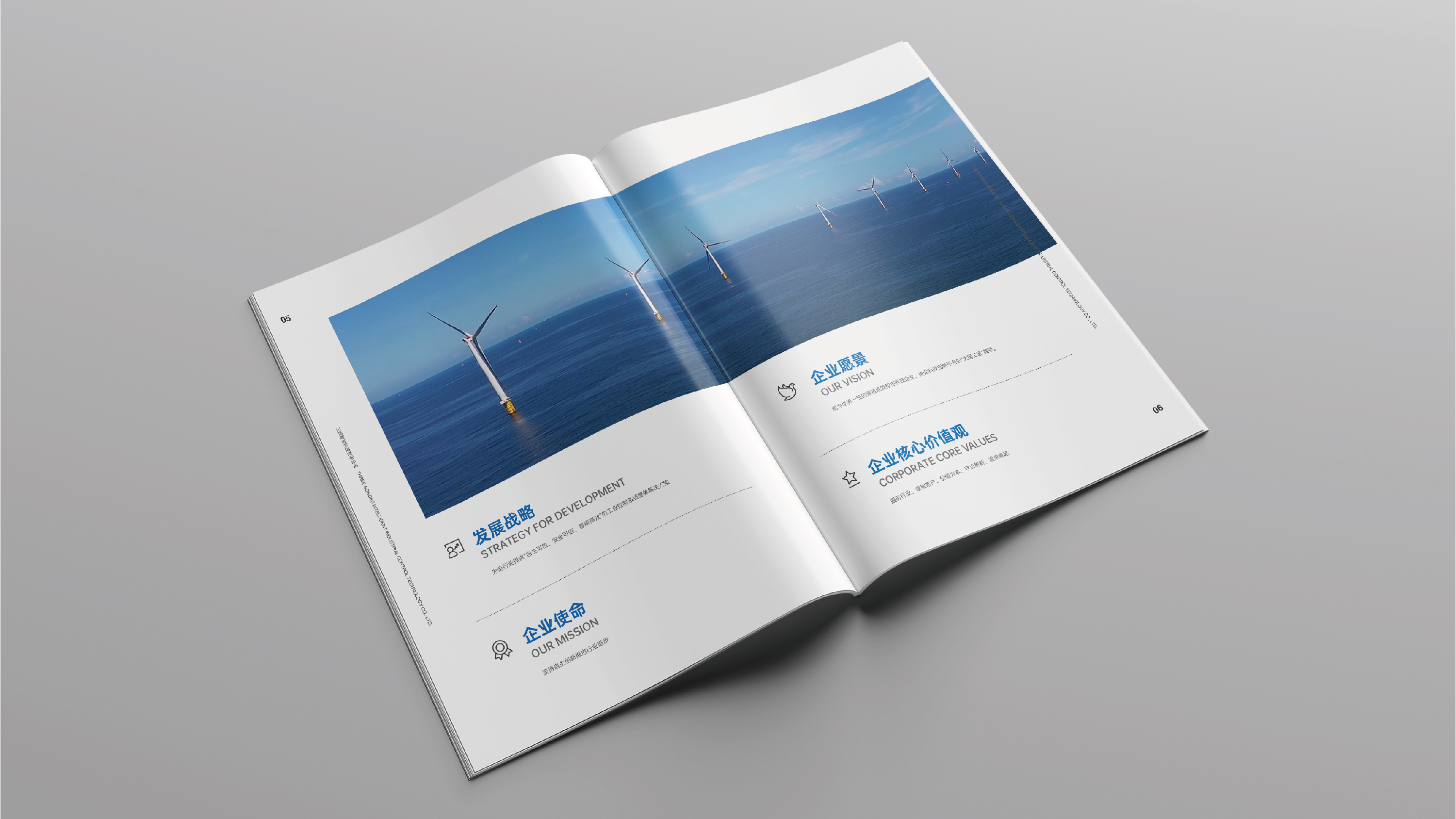 項目背景:三峽智控科技有限公司是是由中國長江三峽集團有限公司面向清潔能源工控系統領域打造的科技攻關與產業發展主體。公司以工控系統核心技術研發為主線,從基礎攻關、應用研究,到產業化運營的全鏈條發力,鞏固三峽集團的行業創新主體和產業鏈“鏈長”地位,引領推動清潔能源工控全產業鏈一體化、數字化、智能化和可持續化高質量發展。艾的爾設計接受其委托,承接畫冊設計項目。在畫冊設計、創意的過程中,設計師通過對行業屬性進行深入地了解,在畫冊封面設計中放入風力發電圖片,表現出了企業的行業屬性,畫冊整體采用藍色做為主色調,以便于與三峽智控風能的品牌形象保持統一。畫冊的畫面格局非常的輕松靈活,但又不失大公司的嚴謹之風。潔白的風能電機映襯在藍色的背景中,體現了卓越的科技時尚感。整本畫冊傳達出企業沉穩、專業的視覺形象,讓讀者能夠感受到企業實力。