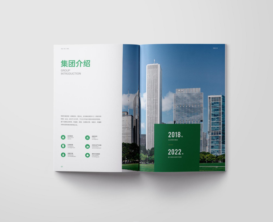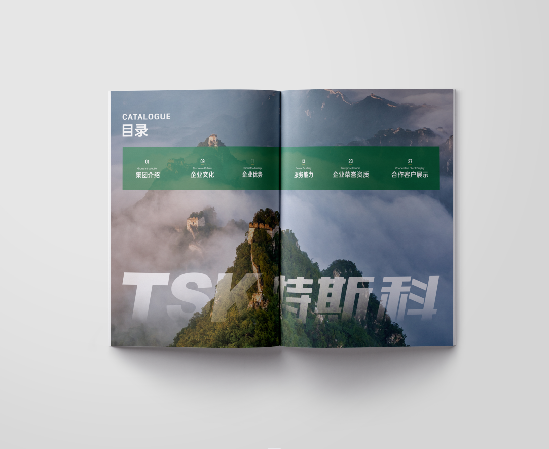 項目背景:TSK特斯科集團是一家集團化、整合化、多品牌經營的PCO(有害生物防制)企業。致力于在蟲控服務、應急管理、環境與空氣治理、消毒殺菌等方面為客戶提供貼心可靠的服務與安心高效的保障。服務內容涵蓋從技術檢查和日常預防性檢查,到蟲害預防、控制凈滅工作、清除害蟲污染物、專業消毒等全過程。此外還針對不同行業的客戶需求,協助管理供應鏈,提供包括人員培訓、蟲害風險咨詢、鑒定報告、通過內外部審計等高附加值服務。艾的爾設計通過與企業進行深入溝通,明確企業對于畫冊設計的需求,畫冊封面內容簡潔并突出重點,綠色的采用,與品牌vi調性一致,符合行業屬性,在內頁的設計中,按黃金分割比例設計,標題與文字的板塊相互呼應,圖文分布疏密有致,整個版面簡潔優雅。畫冊內頁的顏色選用上,和封面相互呼應,以綠白等清新雅致的顏色為主。整個畫冊,設計精簡、嚴格,充分展現出了企業的訴求和形象。