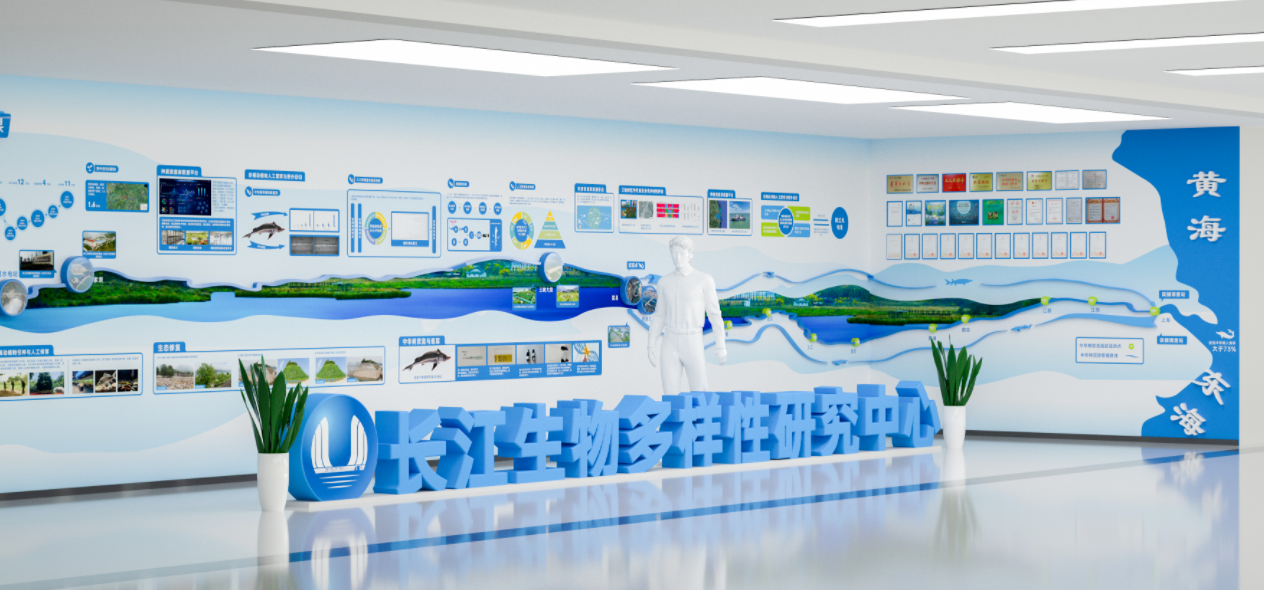 項目背景:長江生物多樣性研究中心是三峽集團長江生態環境工程研究中心內設機構,主要負責水利工程與水生生態環境協調可持續發展研究、長江經濟帶生物多樣性保護重大課題研究,以及生態修復技術、珍稀瀕危物種繁育技術和生物多樣性保護技術研發等工作。艾的爾品牌設計承接其文化墻設計,與客戶深入溝通后,決定整體形式以長江流實際流向為主軸,展示生物多樣性中心基地分布、重要科研和技術成果等,受到客戶的一致好評。