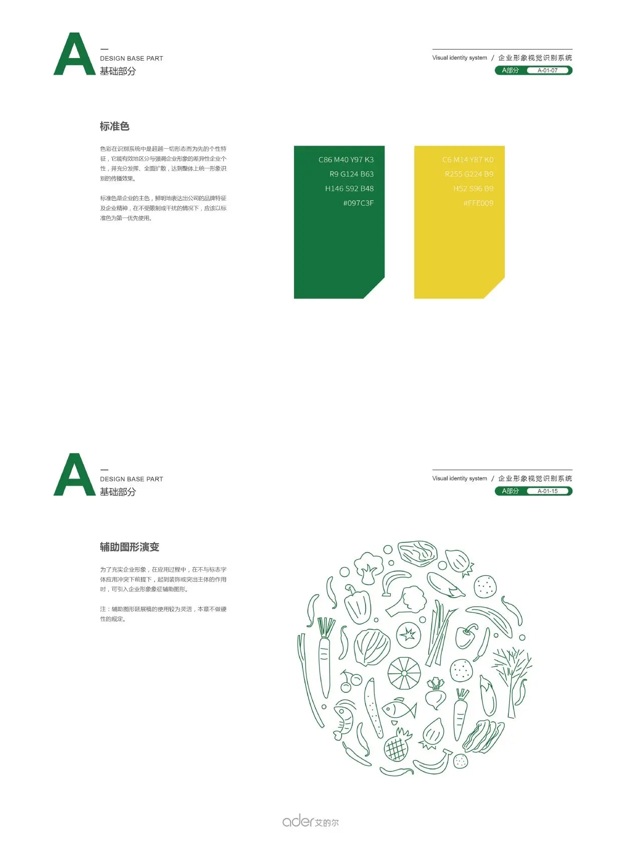 ①基礎部分:對品牌符號及視覺符號核心的展示和規范化,包含了品牌標志及其使用規范、品牌色、輔助圖形及其使用