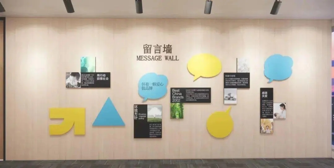 互動性:高互動性的文化墻,鼓勵員工和訪客參與其中??梢蕴峁┛瞻讌^域供員工留言或照片展示,以及與文化墻相關的