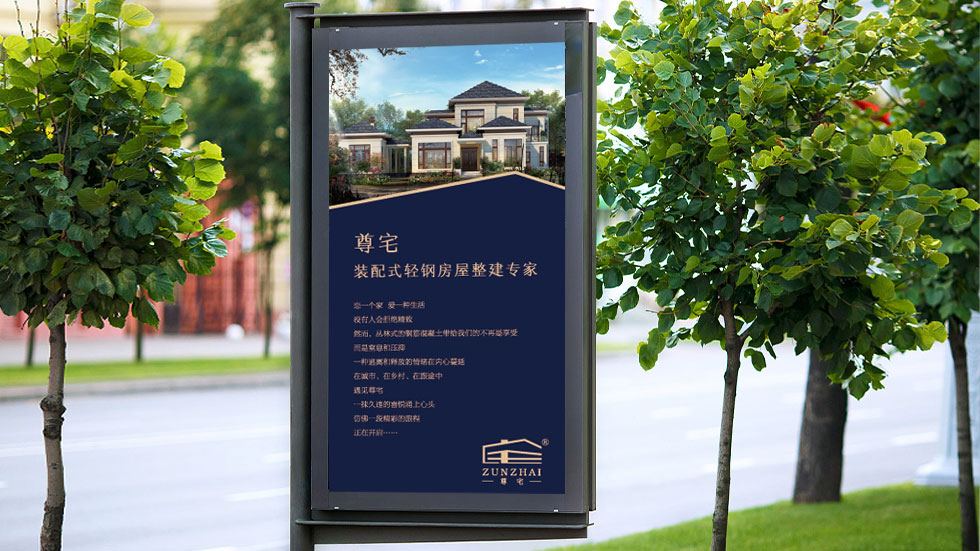 項目背景:尊宅是一家從事輕鋼別墅的企業,裝配式輕鋼別墅整建專家,艾的爾設計承接其品牌設計,包含VI設計、標志設計、名片設計、宣傳品設計、三折頁設計、產品手冊設計、招商手冊設計等,及時了解客戶需求變更調整方案,有效的完成項目,讓項目最終完美呈現。尊宅標志設計取用品牌名稱尊宅中的“宅”字為設計元素,用藝術化的手法將其圖形化,以簡約、格調高雅的形式呈現。圖形中不僅融入了輕鋼別墅的外形特點,也把行業特性輕鋼解構的表現的淋漓盡致,整體圖形看起來更加棱角分明,穩重非常,凸顯行業屬性。規范的設計、精確的尺寸把握也表達了企業在輕鋼別墅領域中對專業技術的嚴格標準和嚴謹態度。