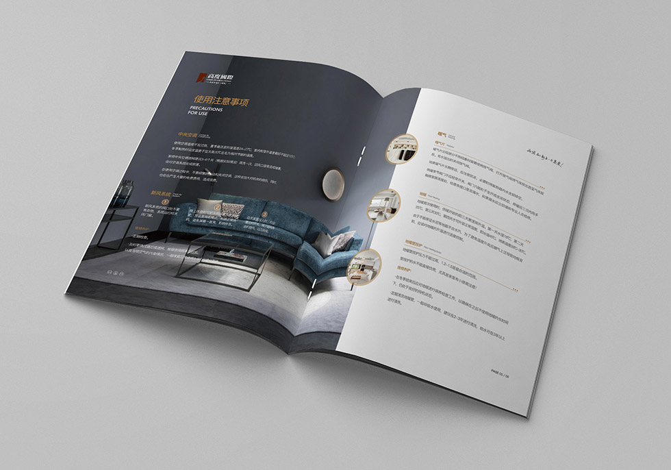 項目背景:高度國際工程裝飾(武漢)有限公司屬于北京高度國際旗下分公司,高度國際裝飾設計集團(簡稱高度國際)創立于2011年,設計乙級、施工國家一級資質,中國建筑裝飾協會常務理事單位,業務覆蓋家裝類及公裝類的設計咨詢、產品研發、方案定制、主材及配飾供給、裝修施工、售后服務為一體的大型專業化裝飾設計集團,總部位于北京一號地國際藝術園區。艾的爾承接其畫冊設計制作,成立品牌設計小組,與企業進行深入溝通,明確企業對于畫冊設計的需求,畫冊整體顏色采用家具色,凸顯行業屬性家具家居,與內容家具保養手冊吻合。
