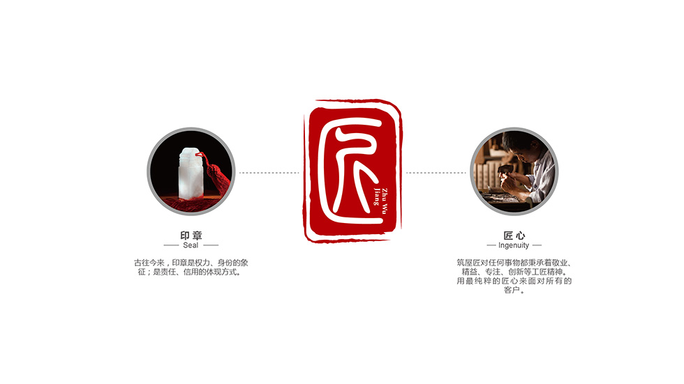 項目背景: 武漢半島筑屋科技有限公司于2005年8月成立,注冊資本800萬元;是大型裝備制造企業半島重工旗下,聚焦“中國鄉村自建房”領域,以“匠造美好生活”為使命,以受孕于“工匠精神”的“筑屋匠”為品牌,以設計為驅動力的鄉村綜合住宅生活公司。公司坐落在武漢東湖高新技術開發區,占地近50000平方,建筑面積近60000平方。艾的爾設計承接其品牌VI設計,成立品牌VI設計小組7人:品牌總監1名、設計總監1名、資深設計師4名、文案策劃1名。了解品牌的本質需求、商業目的、目標消費群體審美偏好、行業與品類特性及品牌文化。設計師采用印章和匠心元素的結合,印章是權力、身份的象征,是責任、信用的體現方式;匠心代表筑屋匠對任何事物都秉承著敬業、精益、專注、創新等工匠精神,用最純粹的匠心來面對所有客戶。設計小組反復修改,最后完成從概念到形象生動的塑造呈現,項目在有效時間內獲得了客戶驗收。