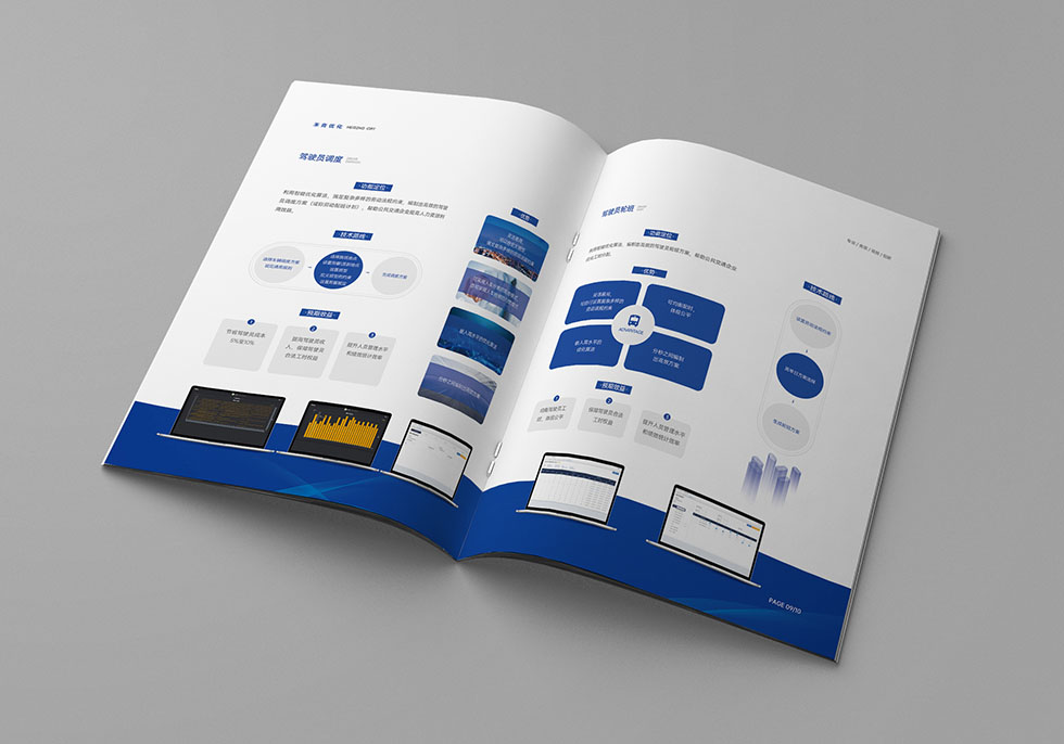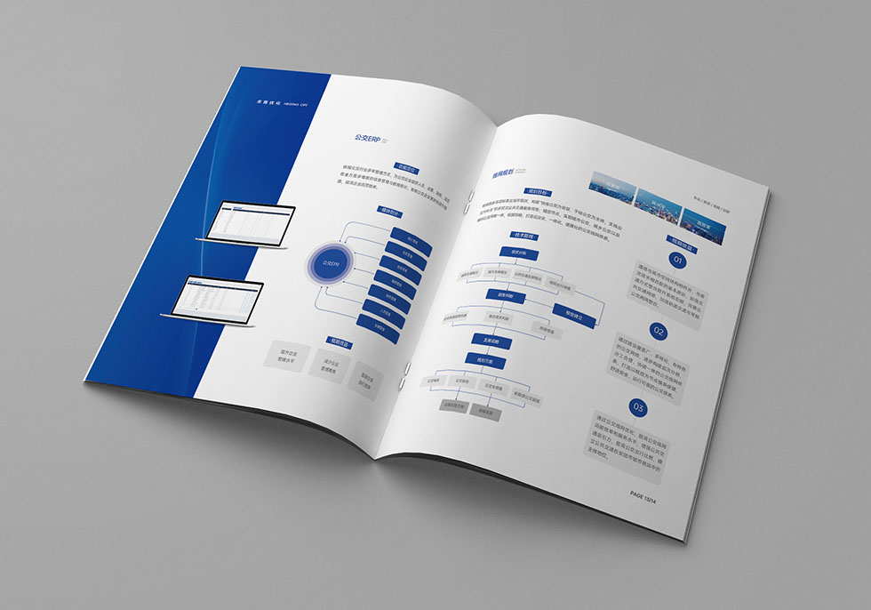 項目背景:武漢禾青優化科技有限公司創建于2019年6月,軟件著作權10項,發明專利5項,以全面建設公共交通運營服務智能化為核心,為用戶(政府、公交企業、乘客)提供智能公交一體化解決方案,幫助建成高品質、高效益的公共交通服務體系。艾的爾承接其畫冊設計制作,成立品牌設計小組,與企業進行深入溝通,明確企業對于畫冊設計的需求,畫冊采用藍色與白色,體現科技感,奠定了畫冊整體基調。封面以公交現線圖為載體,體現企業主營業務,表現手法比較創新,內頁圖片采用跨版的表現手法,大氣高級,提煉核心要點,進行精煉設計。封面采用藍色,藍色則寓意企業、汽車等標準色,它代表智慧,象征著和諧世界、永不言棄的精神。
