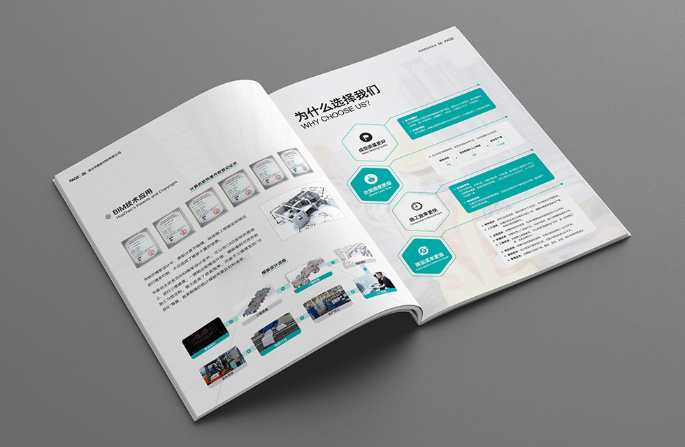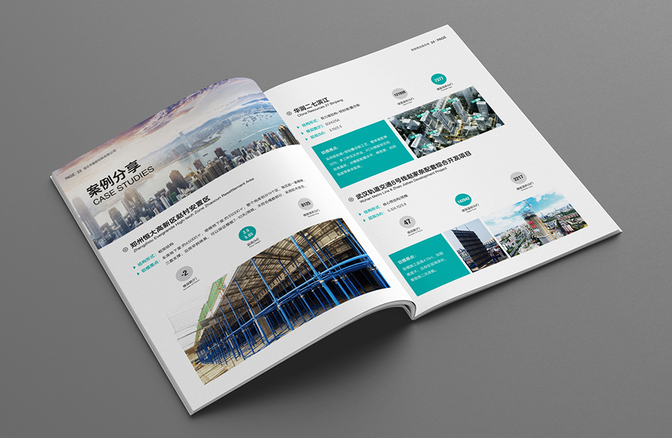 項目背景:華震集團是一家以經營建筑材料為主,集建筑總包、勞務大清包、鋼材商砼貿易、新材料研發制造、鋼材大小料加工、倉儲和物流為一體的中大型企業。集團建有黨組織、工會、公益志愿組織和完善的企業文化建設體系。艾的爾設計接受其委托,承接畫冊設計項目。在畫冊設計、創意的過程中,設計師通過對行業屬性進行深入地了解,在畫冊設計、創意的過程中,重點在表現企業主要是從事建筑總包,建筑材料供應等服務,因此在設計中以藝術的手法表現企業的行業屬性。在畫冊色封面設計中,設計師考慮到華震集團的企業定位是智能建造服務商,生產理念上突出智能化、標準化、環?;?,因此色彩選擇藍綠色系,給人環保和智慧的觀感,給人一種平和恬靜的感官效果,封面中建筑樓體直接展現華震的業務范圍,建筑類(地下室、辦公體系建筑、住宅體系建筑)建造服務,作為企業和項目畫冊,能夠開門見山傳達畫冊的類別和價值。從封面中都彰顯出企業的實力強大,沉穩細致。在內頁的設計中,按黃金分割比例設計,標題與文字的板塊相互呼應文圖分布疏密有致,整個版面簡潔優雅。大膽留白,恰到好處的留白使畫冊設計版面注入了生機,版面設計中有部分透明化的背景圖,是整個畫面不死板呆滯,整體給人大氣、智慧的印象。整個畫冊傳達出了沉穩、專業的視覺形象,對塑造企業專業、實力的形象有極大的作用。