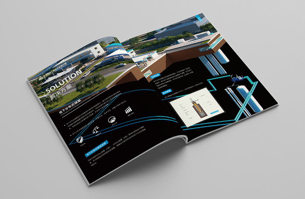 項目背景:中冶武勘堅持“冶金勘察國家隊,資源保障主力軍,基本建設排頭兵,巖土工程、智慧應用、資源勘查領域具有特色的工程綜合服務提供商”戰略定位,依托測繪、勘察、檢測監測、巖土工程等傳統主業核心基礎支撐,積極打造工程總承包、智慧應用、能源環保、資源開發四大業務板塊,構建傳統主業及資源勘查與礦山建設、智慧應用、地下空間開發、巖土工程一體化、新能源工程、生態環境治理、特色基礎設施建設八個業務方向,為客戶提供集規劃、投資、建設、運維為一體的工程全生命周期服務。艾的爾設計接受其委托,承接畫冊設計項目。在畫冊設計、創意的過程中,設計師通過對行業屬性進行深入地了解,根據企業屬性,進行了畫冊設計、創意。在畫冊封面設計中,選用具有深地儲氫系統代表性且現代感、企業化的圖片組合成‘H’和‘M’,‘H’代表氫能源,則右側設計感的‘M’代表MCC,對字母組合進行藝術化設計,使得整個封面具有嚴謹、穩重的風格,大膽留白凸顯字母‘H’和‘M’,展現了企業的經營業務和追求科技以及嚴謹負責的工作態度。封面字體設計干凈利落,藍色代表理性科技,契合企業形象。在內頁的設計中,按黃金分割比例設計,標題與文字的板塊相互呼應文圖分布疏密有致,整個版面簡潔優雅。畫冊內頁的顏色選用上,和封面相互呼應,以藍白等清新雅致的顏色為主。整個畫冊,設計精簡、嚴格,充分展現出了企業的訴求和形象。