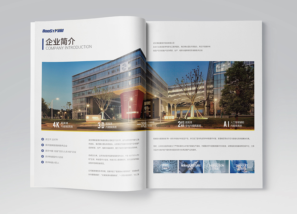 項目背景:武漢博視曼醫療科技有限公司的的畫冊宣傳其內窺鏡的相關視覺產品,凸顯公司的服務與產品的質量,艾的爾設計接受其委托,承接畫冊設計項目。在畫冊設計、創意的過程中,設計師通過對行業屬性進行深入地了解,根據企業屬性,進行了畫冊設計、創意。因此在畫冊設計中以藍與灰定調,點綴黃色,延續品牌視覺標準色,同時凸顯專業性的沉穩可靠。整體版式突出圖片篇幅,冷調圖為主,凸顯產品品質,能最大視覺與感官上傳達產品的宣傳與公司服務內容