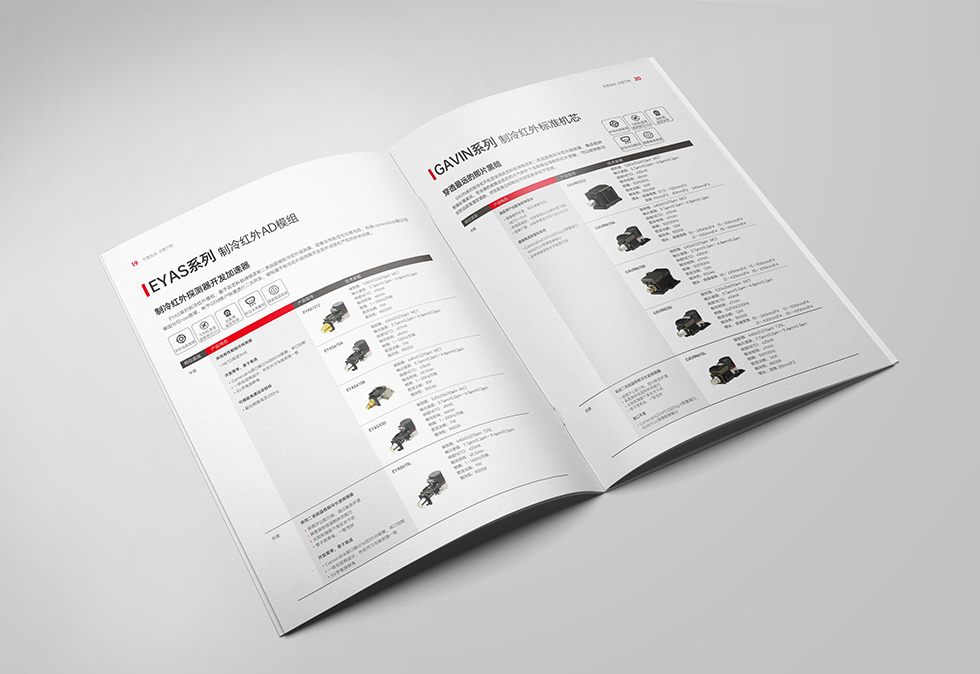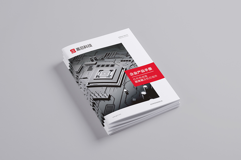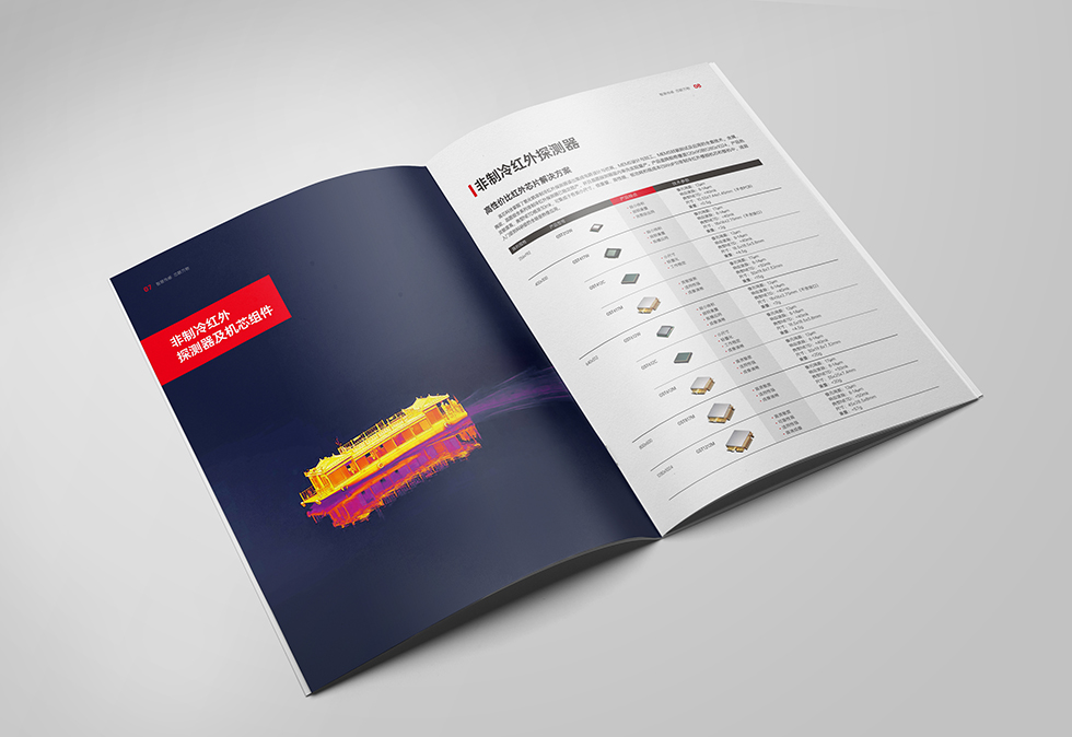項目背景:武漢高芯科技有限公司掌握了紅外熱成像技術的核心——紅外焦平面探測器,致力于為全球紅外熱成像用戶提供專業的非制冷和制冷紅外探測器、機芯模組以及應用解決方案。公司產品品類豐富,覆蓋多種面陣規格、多種像元尺寸以及多種波段組合 。產品靈敏度高、可靠性好,各項性能指標達到國際先進水平,已廣泛應用于人體測溫、工業測溫、安防監控、無人機載荷、氣體泄漏檢測、戶外夜視、智能駕駛、物聯網、智能家居、智能硬件等領域。艾的爾設計接受其委托,承接畫冊設計項目。在畫冊設計、創意的過程中,設計師通過對行業屬性進行深入地了解,在畫冊的封面設計中,創意的過程中,設計師通過對行業屬性進行深入地了解,以身臨其境的設計思路,去探索紅外熱成像的新世界。在封面設計中,邊框留白,使芯片背景圖更加聚焦,讓畫面整個留有呼吸的空間,突出芯片灰色部分,紅色與灰黑色搭配,與企業logo色相呼應。在內頁的設計中,用表格的形式突出重點,表格間距把畫面拉滿,既不呆板又留有透氣的空間。內頁的顏色也以白色為主,整體給人大氣、智慧的印象。整個畫冊傳達出了理性、專業的視覺形象,對塑造企業專業、實力的形象有極大的作用。